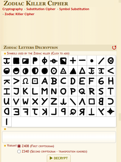 A PDF was provided with Zodiac and Astrology symbols. My first instinct was to search up if there were any Zodiac-themed ciphers, and found the Zodiac killer cipher on Dcode: