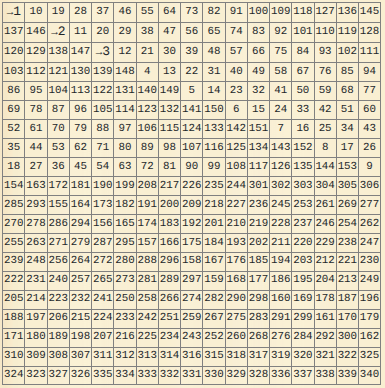 [1,10,19,28,37,46,55,64,73,82,91,100,109,118,127,136,145],